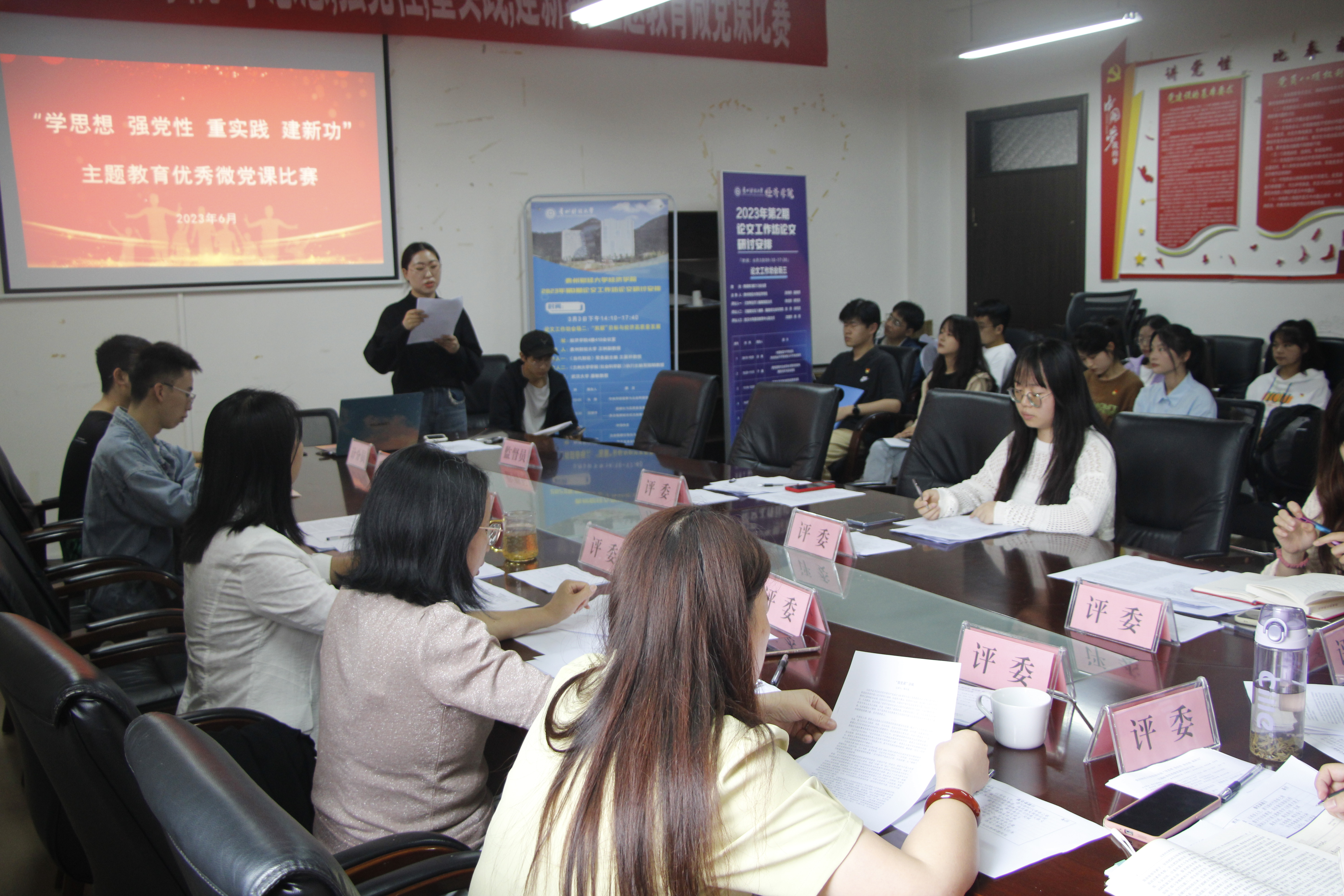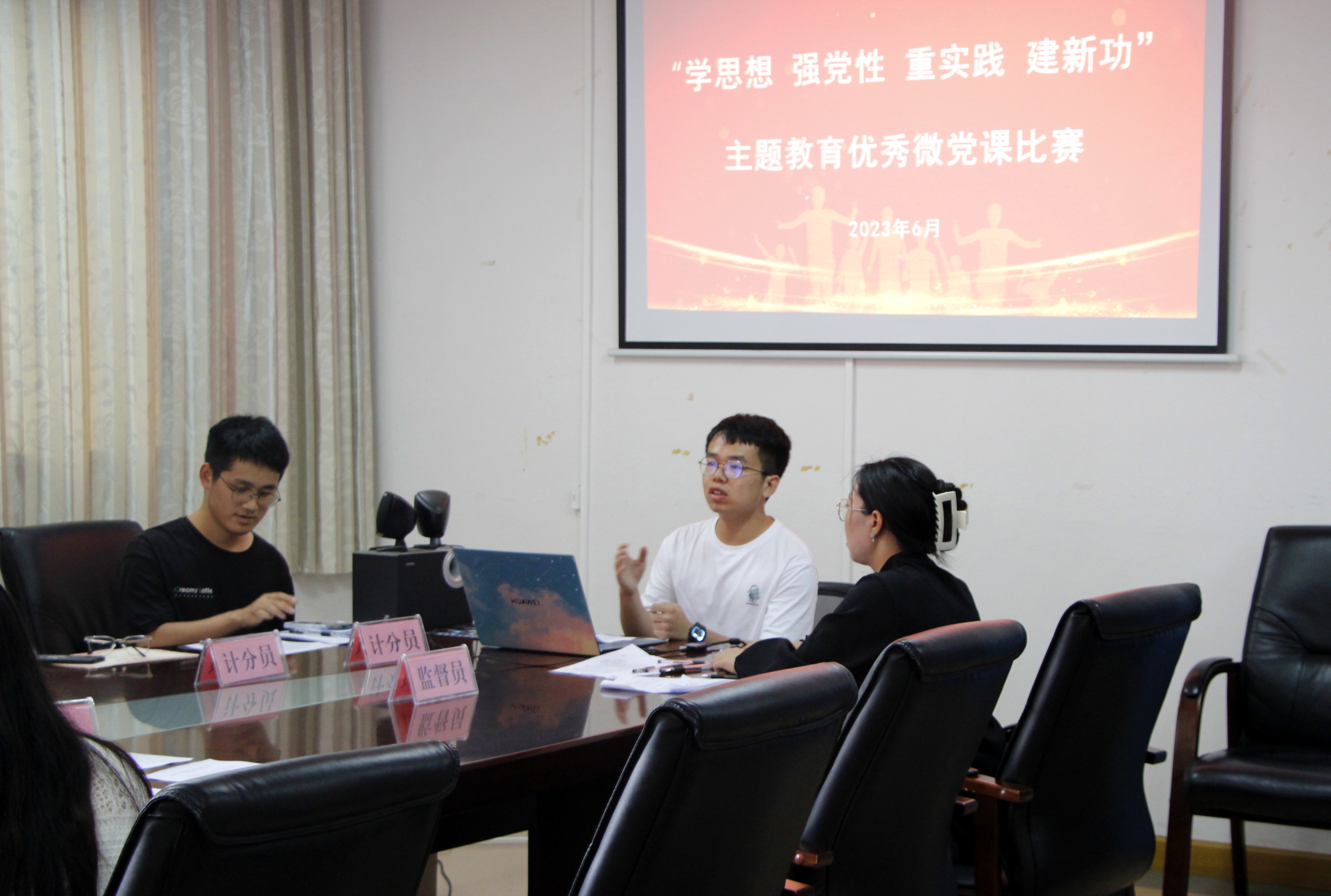 在明德楼418会议室组织开展“微党课”评选比赛,以短小精悍却又触动灵魂的微型党课给党员带来一场深刻的精神洗礼,以提高基层党组织政治生活的自觉行动为党的生日献礼。
