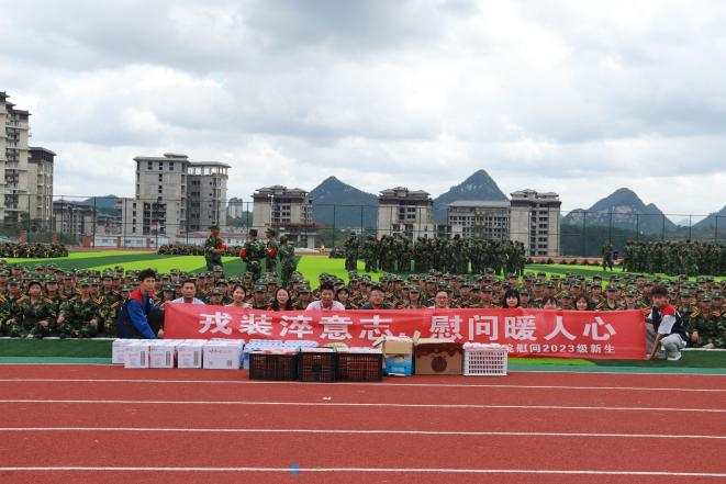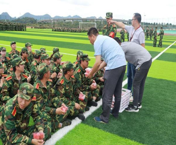 在活动中,朱红琼书记与傅东平院长用暖心的话语对新生表示亲切的慰问,鼓励同学们在军训中要发扬不怕困难、互帮互助的精神,同时带领学生干部为新生发放水果、矿泉水等慰问物资,用实际行动展现对新生的关爱。随后,学院各学生组织的代表为新生们进行了慰问表演,以缓解他们军训的疲劳,并与新生们进行了友好互动,让他们感受到学院的热情与温暖。