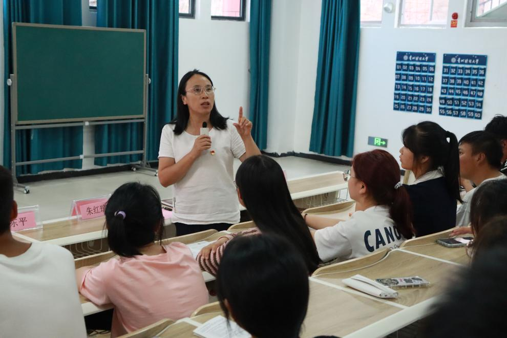 朱红琼书记以《做人与做事–抬头看天,低头走路》为题为新生作开学第一课,呼吁同学们关心国家发展道路,争做德才兼备的社会主义建设者和接班人。