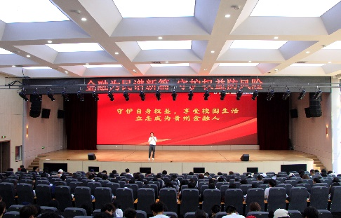 康睿围绕什么叫金融消费者以及财产八大权益的内涵展开宣讲,悉心传授了从大一到大四应如何维护自身合法权益的方法。与此同时,康睿老师还分享了自己从贵州财经大学起步步入金融行业的历程,为日后有志于投身金融行业的同学们提供了宝贵建议,如拥有善于思考的“超级大脑”、勤于记录的“勤劳双手”、抗住压力的“健硕身躯”、对经济发展敏感的“敏锐嗅觉”等。最后,康睿老师送给同学们一句话——勤练七十二变,迎战八十一难!