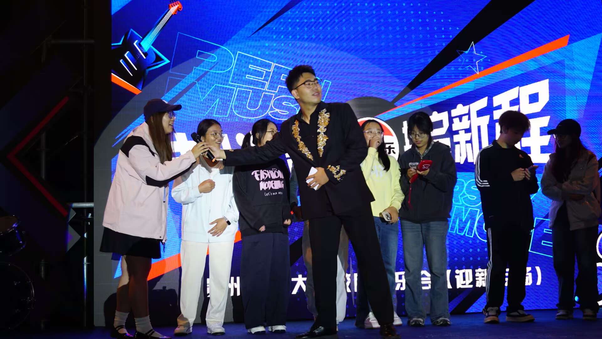 为让观众更好地融入活动,主持人在表演间隙设置趣味互动环节:通过轻松的小游戏拉近与观众的距离,同时开展线上抽奖活动,充分调动同学们的积极性。现场细碎声浪从四面八方涌来,观众主动参与其中,不仅深度领略“相遇贵财 共启新程”的活动主题,也增强了同学们的交流合作,进一步提升了活动效果。