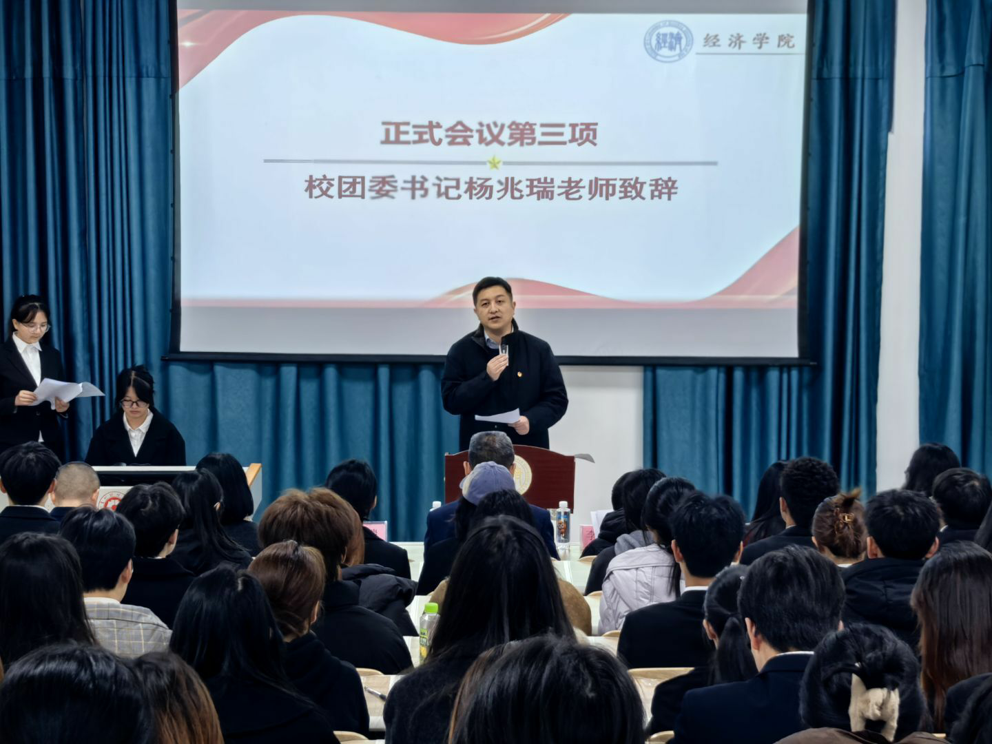 校团委书记杨兆瑞为大会致辞。他对第九次学代表大会暨第五次研究生代表大会的胜利召开表示热烈祝贺,对学院学生会、研究生会的工作成果与服务奉献给予了高度肯定。他强调,全体代表要深刻学习领会大会精神,认真履行神圣职责。同时希望新一届学生组织骨干能继承优良传统,聚焦主责主业,勇于改革创新,团结带领全院同学成长成才,为学校与学院的高质量发展注入蓬勃的青春动能。
