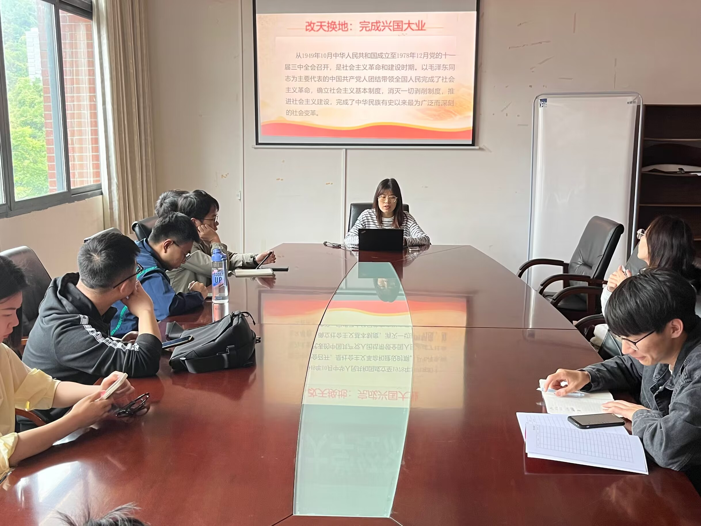 本科生第二党支部围绕主题教育,查找支部建设中的问题、难题,以“毕业生党员教育”为题开展主题党日,开展对毕业生党员组织关系转接程序和手续的专题讲解,并现场组织审核了一遍毕业生党员材料。