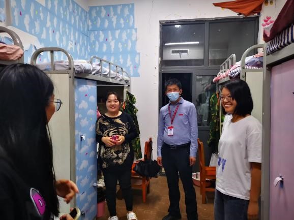 9月2日凌晨4点,学院傅东平副院长发出集结号,党委副书记赵之友、邓志鸿,学生科杨志远、团委彭梦娜、教务科何茜,分别从家里出发逆行返校,与校内老师李继光、王玉玲汇合,全力做好疫情期间行政、教学的保障工作。副院长傅东平同志带队,辅导员、班主任、学生干部多次深入学生寝室,了解学生的线上学习和生活情况,耐心叮嘱疫情期间注意事项,缓解学生在校封闭期间面临生活学习等问题的焦虑情绪。学生科、教务科、学科管理科、团委、党办、院办线上线下准点上岗,全方位保障学院各口工作有序开展。随着疫情日趋严峻,几个年轻同志,连续半个月住在办公室,白天是共同工作的战友,晚上是互相鼓励的伙伴,舍“小家”,为“大家”,以行动诠释初心,用担当践行使命。