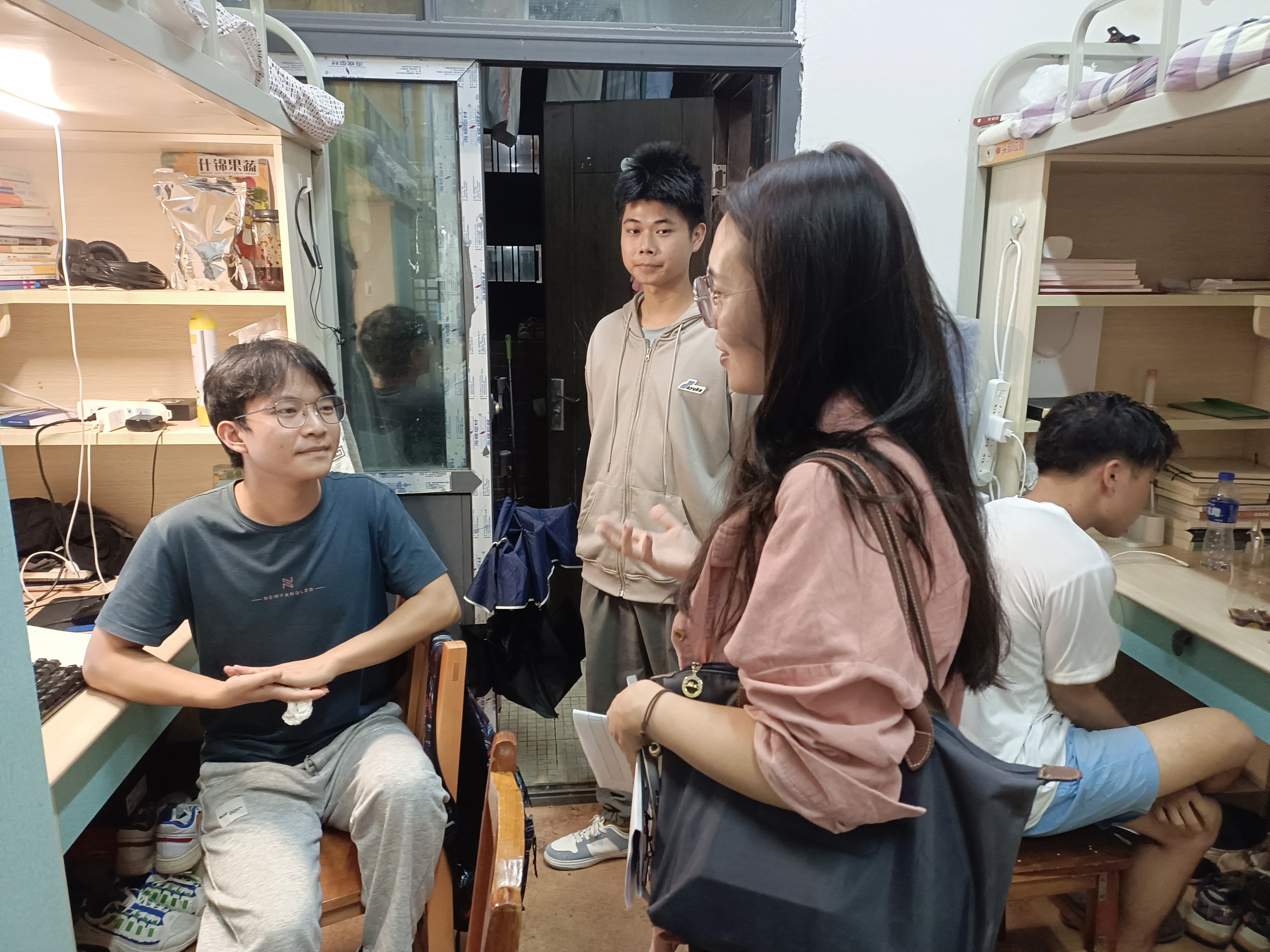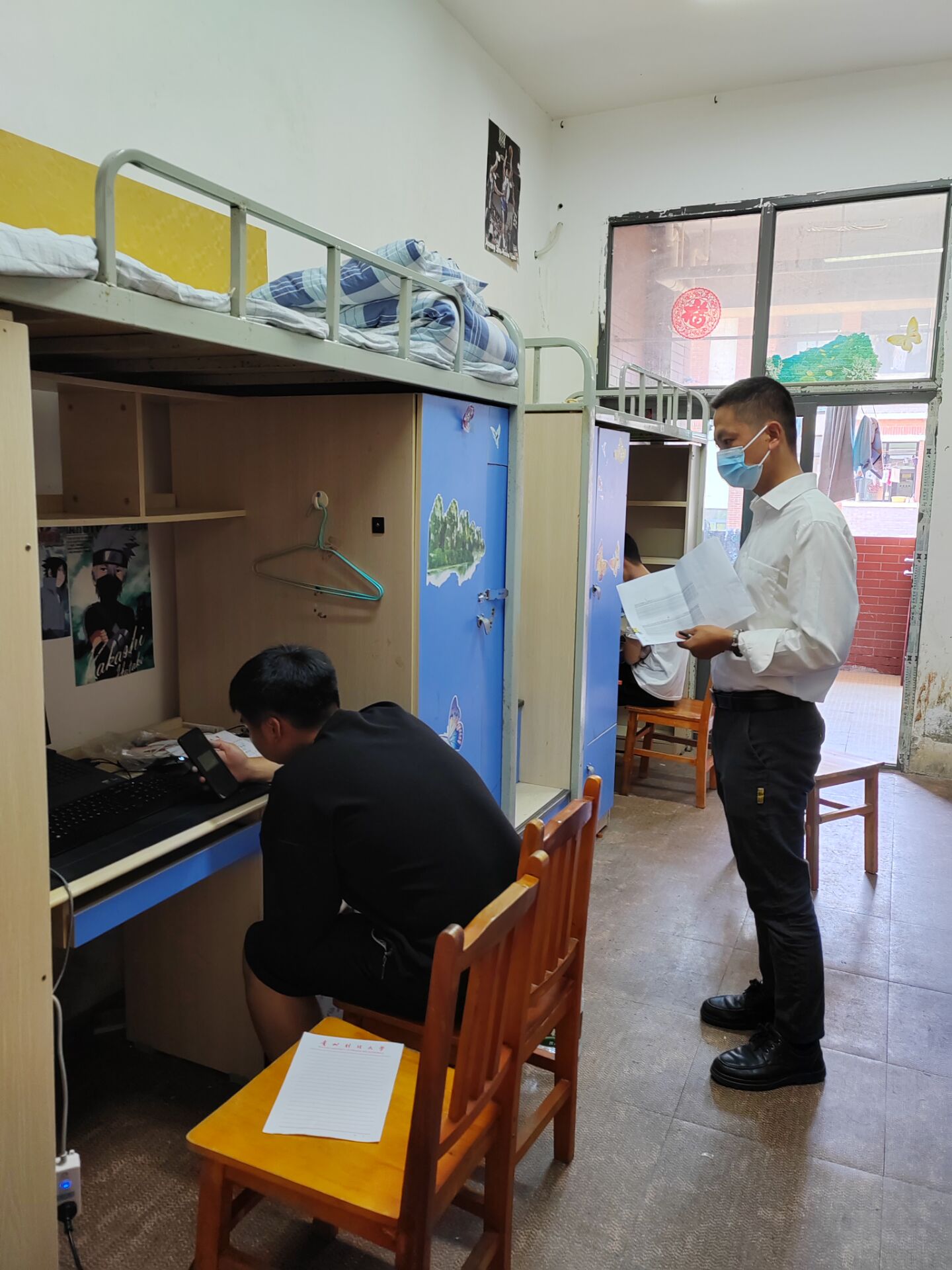 当天,副院长傅东平带队,辅导员、班主任、学生干部一起走进学生寝室。从疫情管理、学习方式、实验班选拔、考研就业、诚信安全等几方面给新生进行宣讲,帮助新生平稳度过静默管理期,更快的融入大学生活。为统筹学院硕士新生、博士新生疫情期间的防疫与学习,维持新生心理稳定,统筹学院教师,为每位新生安排了临时导师,确保防疫工作和学生学习正常有序。启动线上教学后的几天,安排分组多次深入学生寝室,了解学生的线上学习和生活情况,耐心叮嘱疫情期间注意事项,缓解学生在校封闭期间面临生活学习等问题的焦虑情绪。