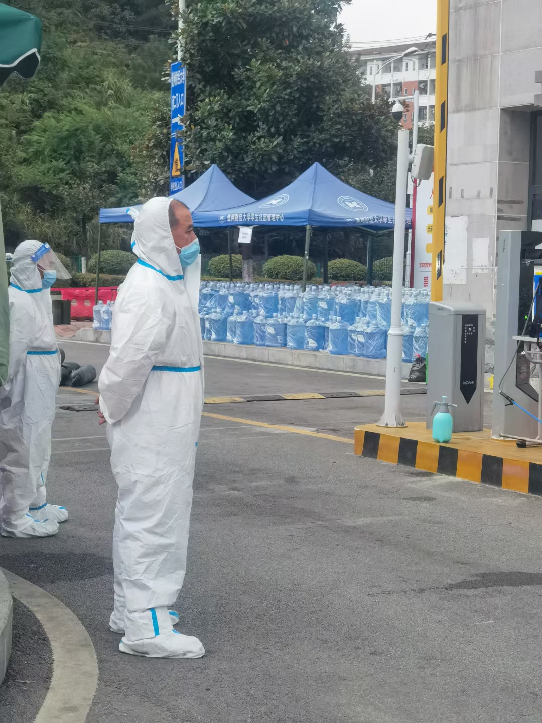 居住在花溪校区的教师纷纷主动报名加入学校的志愿服务,把为学校、为学生贡献一份力量作为自己的应尽之责。物资转运、校门值守、环境消杀、教学楼保洁、食堂秩序维护…他们当中,70%是共产党员,最大年龄57岁。有教授、有博士生导师、有学院领导、还有刚走上工作岗位的科研助理。疫情下,他们成了提笔上讲台,挽袖抬货物的多面手和全能战士!