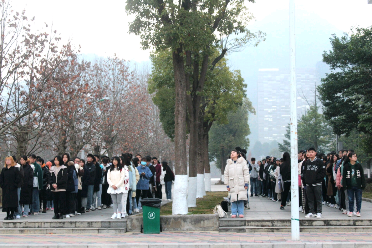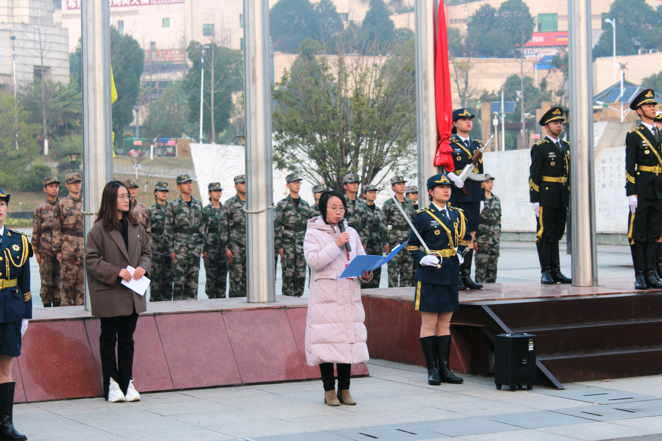升旗仪式开始,国旗护卫队精神昂扬饱满,步伐整齐划一地护送国旗走向升旗台,伴随着雄壮的国歌《义勇军进行曲》响起,鲜艳的五星红旗冉冉升起,全体师生庄严肃立,向国旗行注目礼,齐唱国歌。随后院党委书记朱红琼在国旗下发言,她强调新一代学子站在“两个一百年”奋斗目标的历史交汇点的重要时期,12月9日又恰逢一二·九抗日救亡运动纪念日,此次以升旗仪式开展爱国教育意义非凡。同学们要时刻牢记青年一代的使命担当,磨练坚强意志,努力奋斗增强个人素质,树立正确的世界观、人生观和价值观,为中华民族伟大复兴做出应有的贡献。