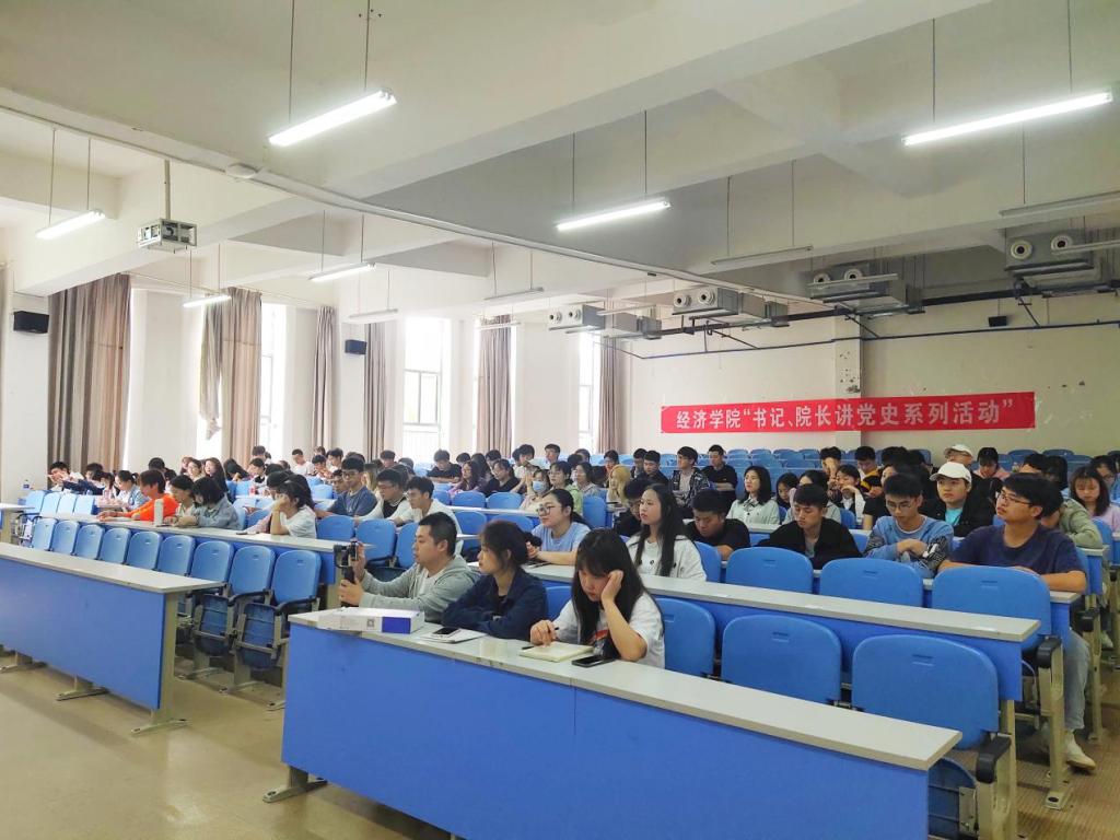 单晓娅副院长带领19级经济学3班、19级资源与环境经济学1班和2班的同学共同回顾中国共产党的伟大贡献。
