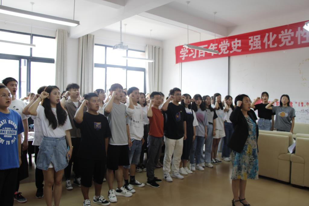 在明德楼418会议室隆重举行新发展党员入党宣誓仪式。宣誓仪式由学院专职组织员彭余琴老师主持,党委书记朱红琼担任领誓人,香港博彩网站