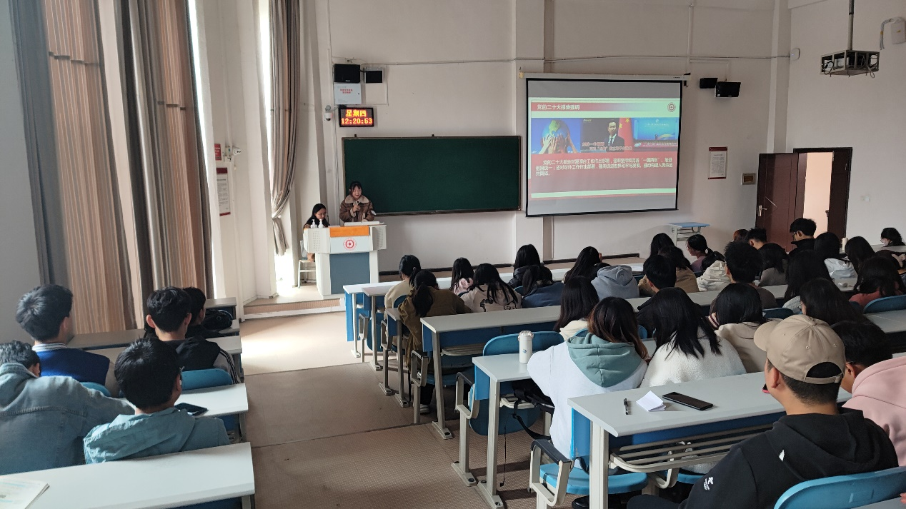 团委彭梦娜老师主持,党的二十大精神学生宣讲员杨姿婧同学进行宣讲。