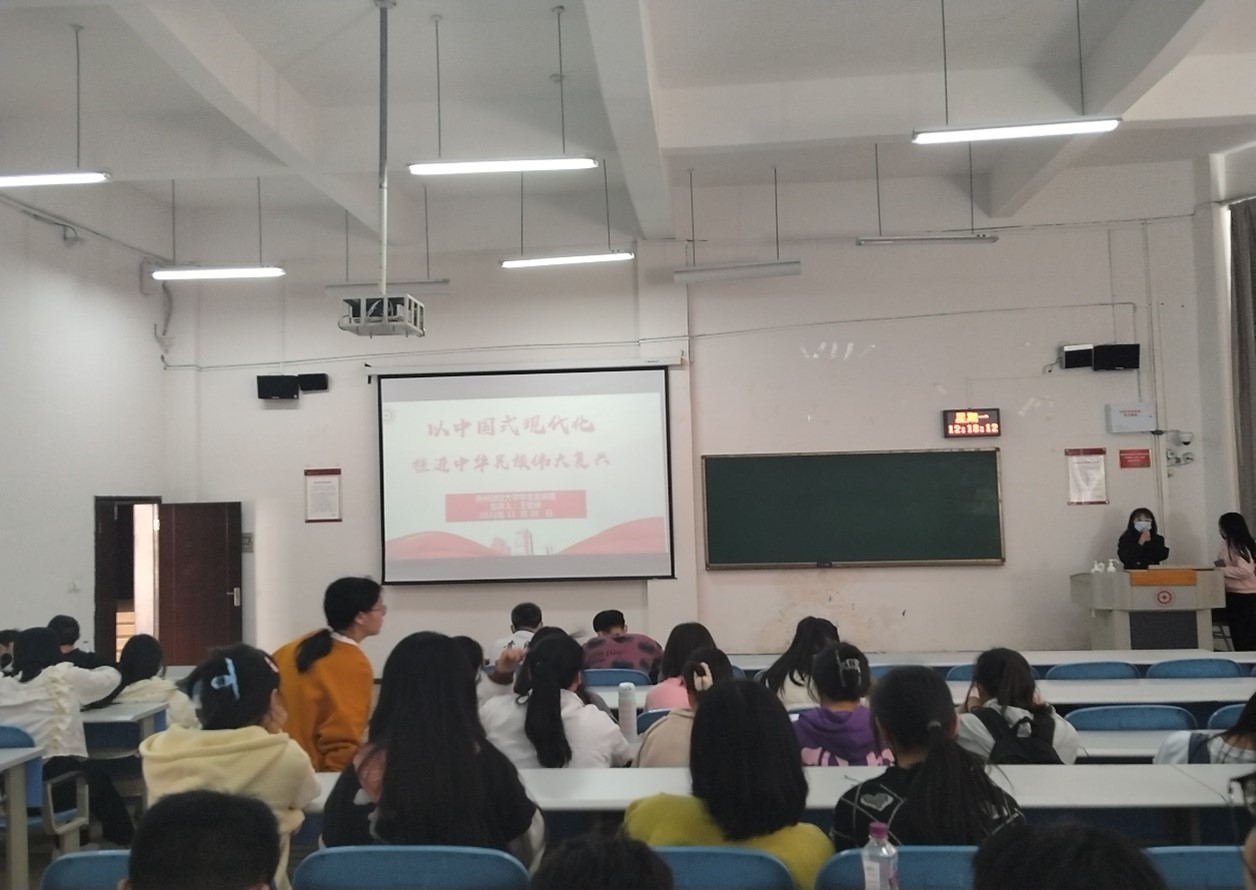 团委彭梦娜老师带领同学们学习《高举中国特色社会主义伟大旗帜为全面建设社会主义现代化国家而团结奋斗》-在中国共产党第二十次全国代表大会上的报告。随后,宣讲员王宏迷分三个部分向大家介绍党的二十大报告的主要内容,分别是中国特色社会主义现代化表现,五个必须坚持以及党的二十大报告强调内容,最后,由各班代表进行发言。