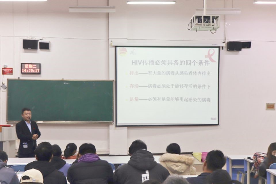 青年志愿者协会主办的“青春无艾”防艾宣传讲座在进学楼阶1-3举行。本次宣讲活动由贵阳市彩艾阳光公益中心主任王文文老师主讲。