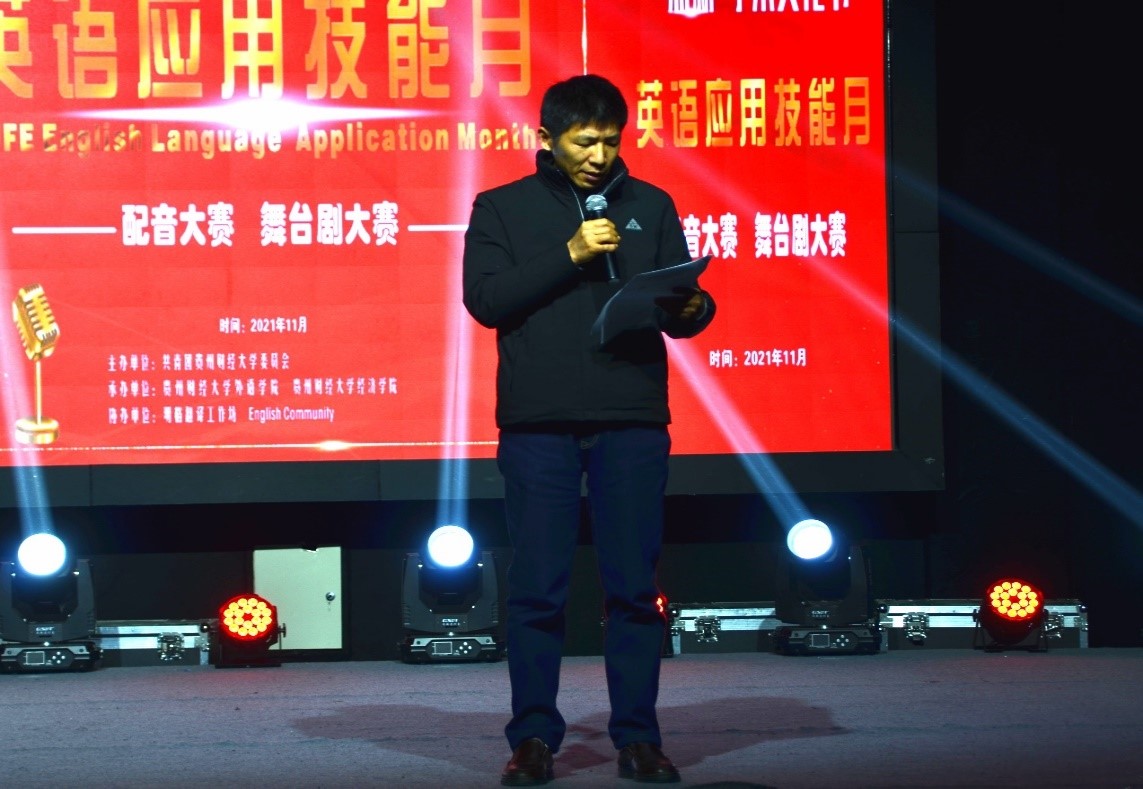 副院长傅东平在活动最后做总结讲话,对大赛成功举办表示祝贺并希望大家通过比赛提升跨文化和跨语言交流能力,提升学术研究基础能力。至此,贵州财经大学首届“鼎新”学术文化节之英语应用技能月配音大赛决赛圆满结束。
