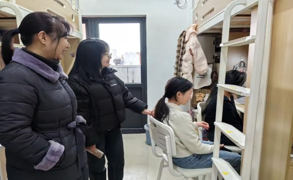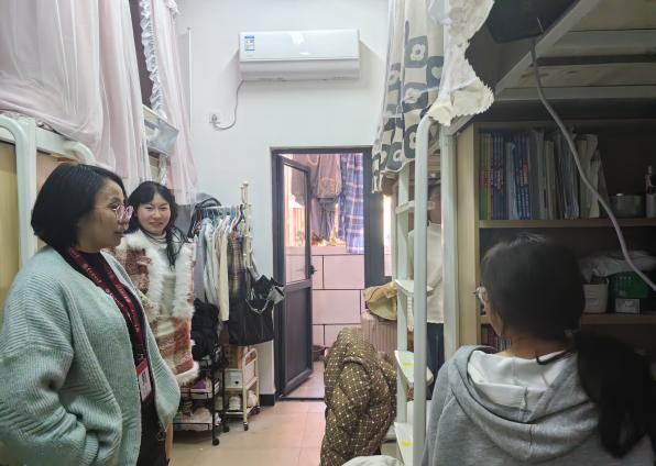 在宿舍,学院领导与同学们亲切交流,叮嘱同学们尽快调整状态,为新学期做好充分准备,提醒大家要遵守校规校纪,提高安全防范意识,注意用水用电安全。保持宿舍环境整洁有序。并呼吁大家在新学期展现全新面貌,合理规划时间,专注专业学习,积极参加实践活动,全面提升自身综合素质。3月4日开学后,学院持续深入寝室进行走访,对宿舍内各项安全隐患进行了细致排查,针对大家提出的问题进行记录,并一一解答。
