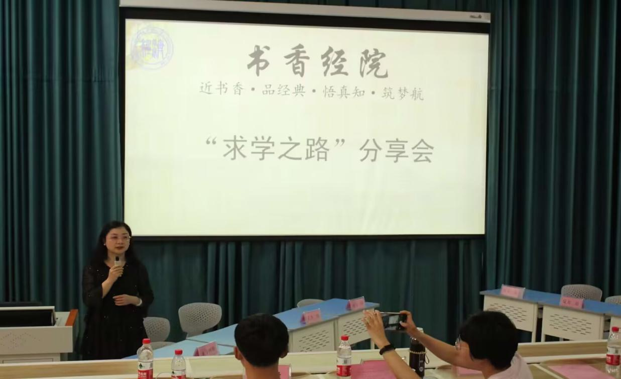最后一项活动:“求学之路”分享会。赵俊红老师分享自己的求学之路,“鸟欲高飞先振翅,人求上进先读书”。她提出懂得摄取必要营养的人更健康,真正的学者往往不是读了很多书的人,而是读了真正有用的书的人。