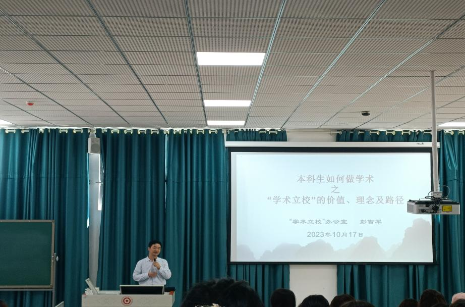 最后彭吉军教授着重讲解了“学术立校”的价值、理念、路径三个方面内容,引导学生主动学习并积极参与学术研究活动。