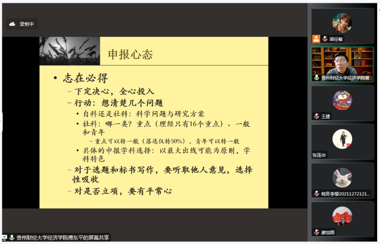 傅东平副院长在线上(腾讯会议号:310276569)开展“国家社科基金申报书写作”辅导讲座,香港博彩网站