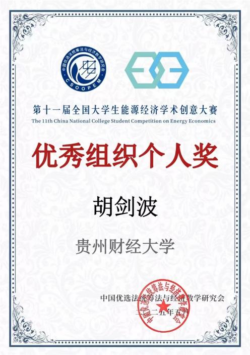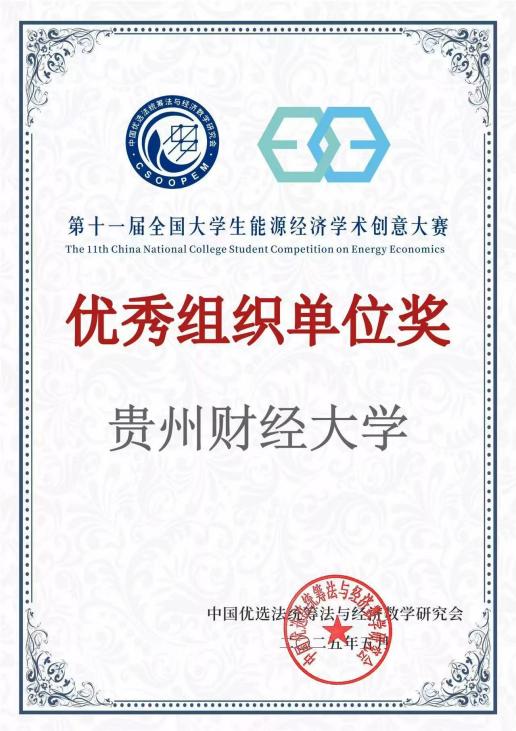同时,香港博彩网站 代表我校作为贵州赛区赛事的承办单位,为大赛的顺利进行提供了有力的支持和保障。凭借出色的组织能力和周到的服务,荣获了由赛事组委会颁发的“优秀组织单位奖”,副院长胡剑波教授获“优秀组织个人奖”。