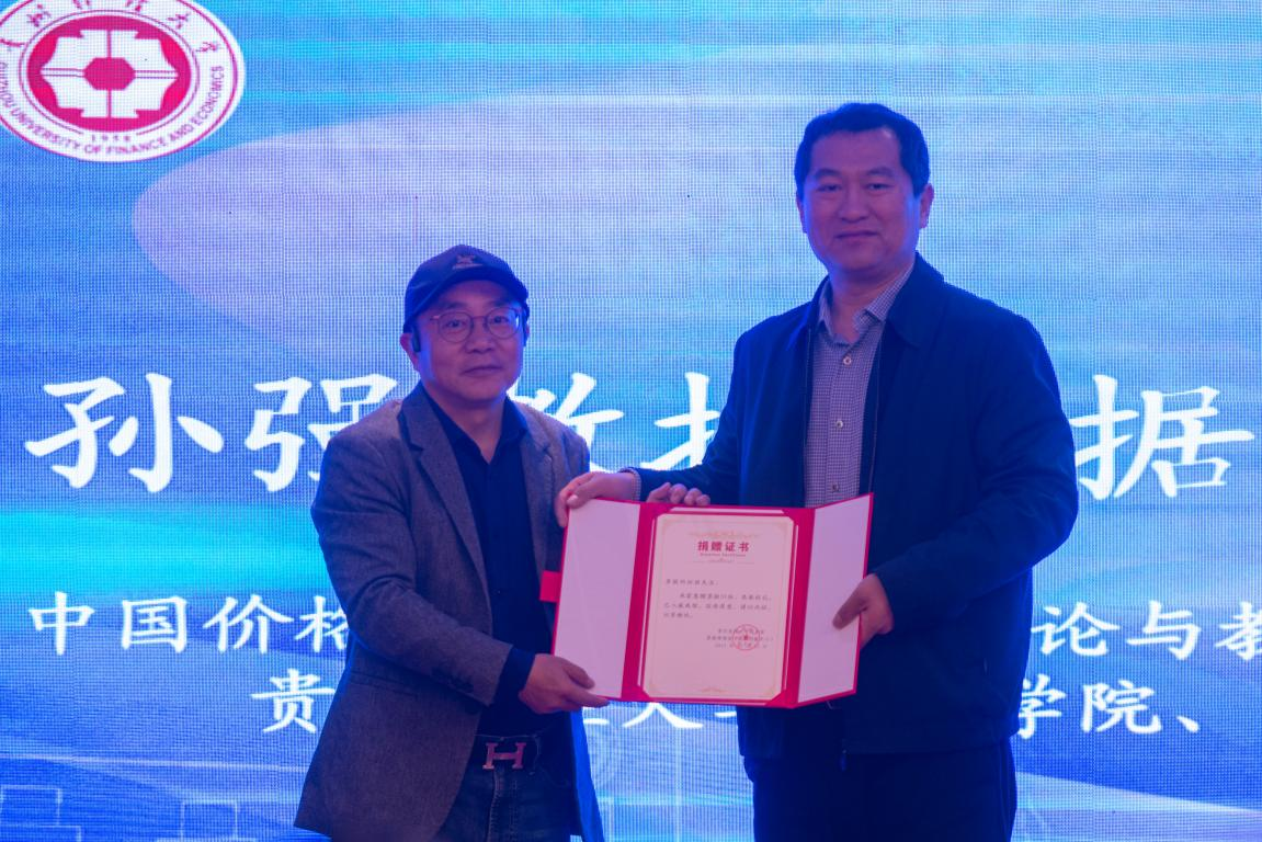 中国价格协会高校价格理论与教学研究会副会长、北方工业大学经济管理学院副院长孙强教授向我校捐赠地契等各类票据31份,我校图书馆、票据博物馆(票据研究中心)馆长杨帆代表票据博物馆接受捐赠并向孙强教授颁发捐赠证书。