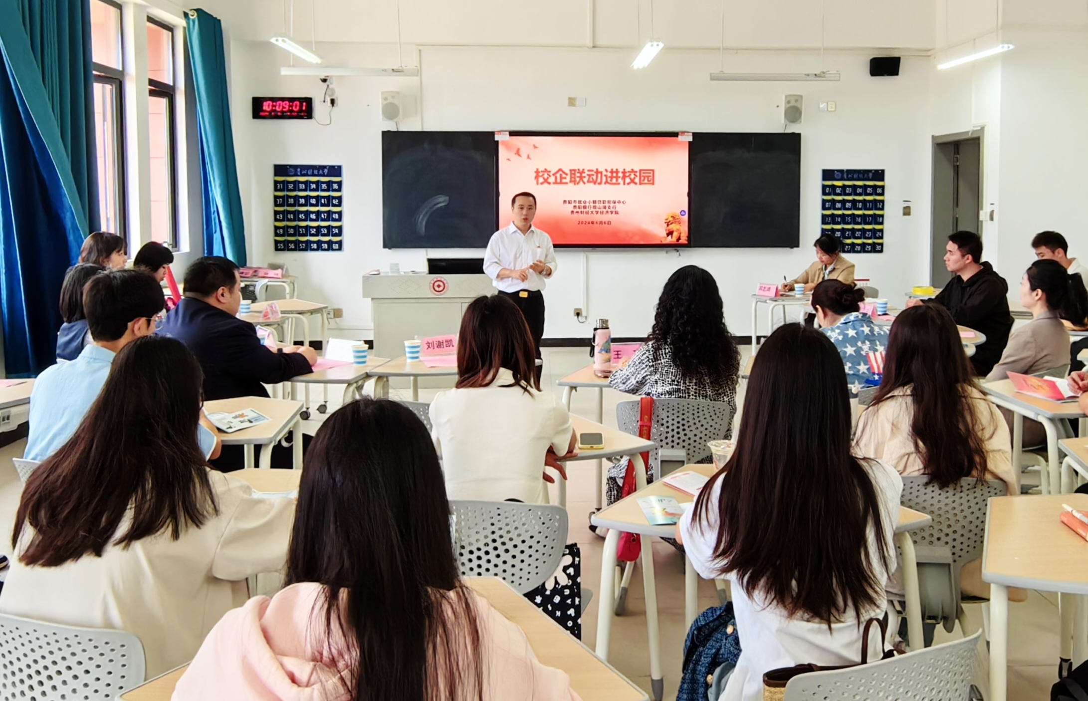 (来源:学生科 蒋晓桃 图文报道)为进一步推进校企合作、拓宽毕业生就业渠道,促进毕业生高质量充分就业,发挥党建引领业务发展的指导作用,2024年6月6日,贵阳银行观山湖支行第二党支部与贵阳市就业小额贷款担保中心党支部一行10人来到香港博彩网站导航 ,给学生带来有关就业创业以及贴近学生生活的金融相关知识、政策方面的解读。香港博彩网站 各年级有创业意愿学生代表、受资助学生代表参与了此次活动,学院党委副书记邓志鸿主持座谈。