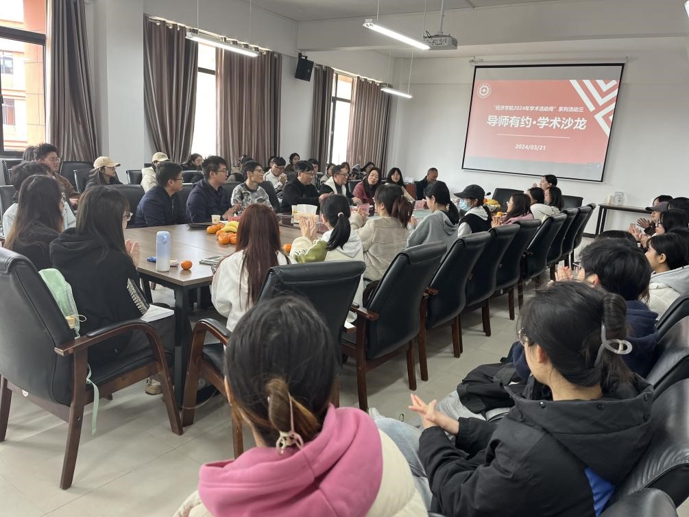 (来源:研究生学生会 王钦 王倩倩 图文报道)3月21日上午,“香港博彩网站 2024年学术活动周”系列活动之“导师有约·学术沙龙”茶话会在东区文澜楼505会议室举行。本活动结合“理论宣传二人讲”同步开展,邀请到王永平教授,硕导组组长李勇刚、袁家菊、任亚运,经济系主任彭伟辉、农林经济管理系主任王世尧、资源与环境经济学系主任王树担任嘉宾,与会嘉宾也是学院专家骨干和青年教师组成的“理论宣传二人讲”宣讲队成员。香港博彩网站 2022级实验班本科生与2023级硕士研究生参加,学院副院长金莲、胡剑波共同主持。