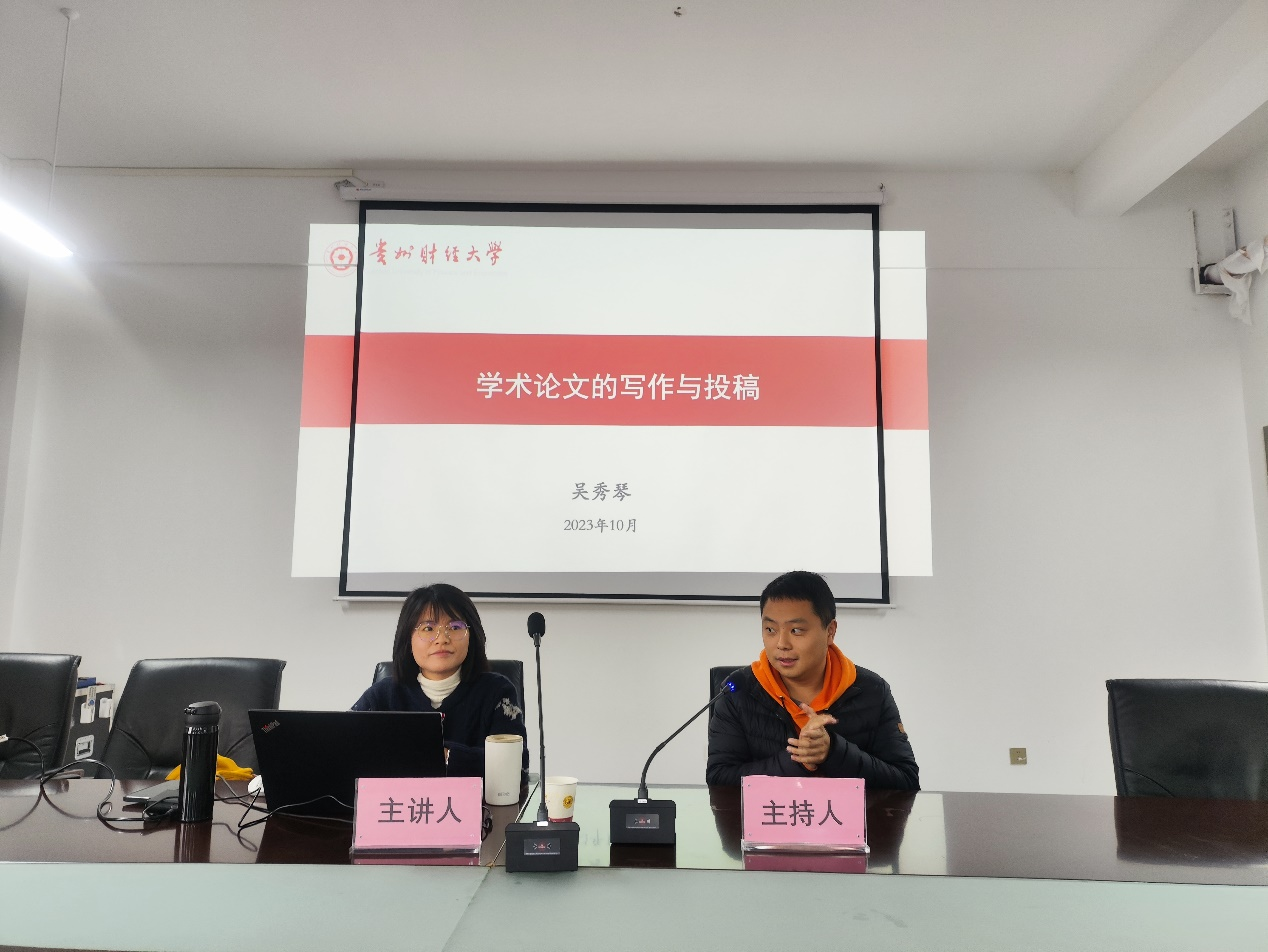在交流会议中,吴秀琴老师从经济学研究过程、论文各部分写作技巧、论文期刊特点及投稿技巧三方面来阐述学术论文的写作以及后续论文投稿问题。