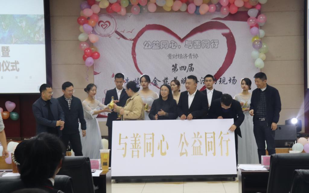 晚会在活力四射的舞蹈下拉开序幕,学院党委朱红琼书记为本次活动致辞并鼓励同学们积极投身公益,关注慈善事业。伴随着热烈的掌声,参会嘉宾共同举起手中沙瓶,浇筑写着“与善同心·公益同行”字样的爱心公益牌,标志着经济青协防艾知识宣传与河流保护志愿服务项目顺利启动。接下来的表演中,由经济青协准备的朗诵、独唱节目,学生创业团队律动音乐带来的吉他弹唱以及来自贵阳市彩艾公益阳光中心团委水木阁汉服社的独舞表演,都引起现场阵阵热烈掌声。本次晚会在节目中间,还穿插了拍卖、牛犊基金捐赠仪式和抽奖环节,现场的嘉宾和同学们都积极互动,将本次晚会推向高潮。最后,在经济青协合唱的歌声里,本次慈善晚会取得圆满结束。