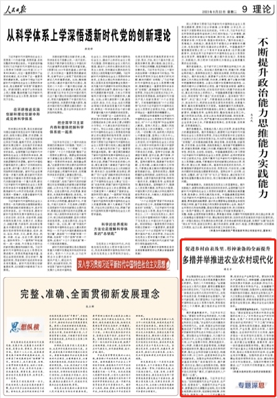 《人民日报》理论版刊发香港博彩网站 傅东平教授理论文章《多措并举推进农业农村现代化》